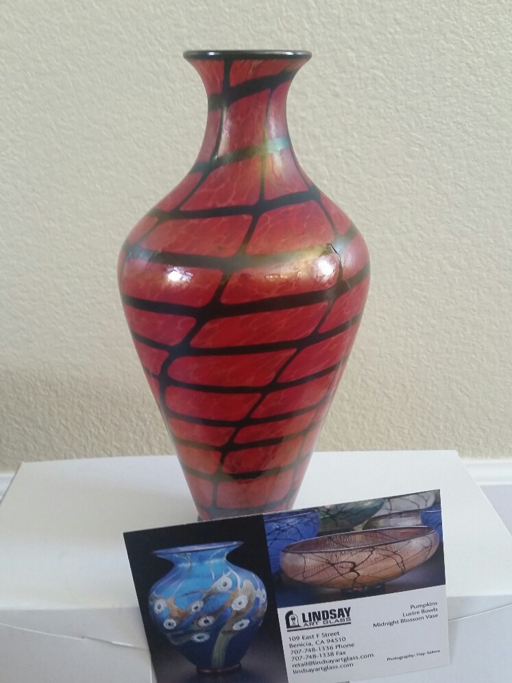 A beautiful original red glass vase made by Lindsay Art glass in Benicia