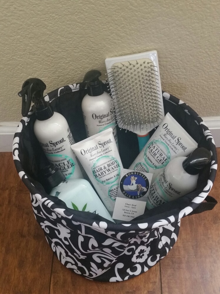 Original Sprout Worry-free luxury Shampoo, conditioner, hair gel, miracle detangler, hair & body wash, morocannoil paddle brush, Hempz triple moisture body creme, and 31 bag.